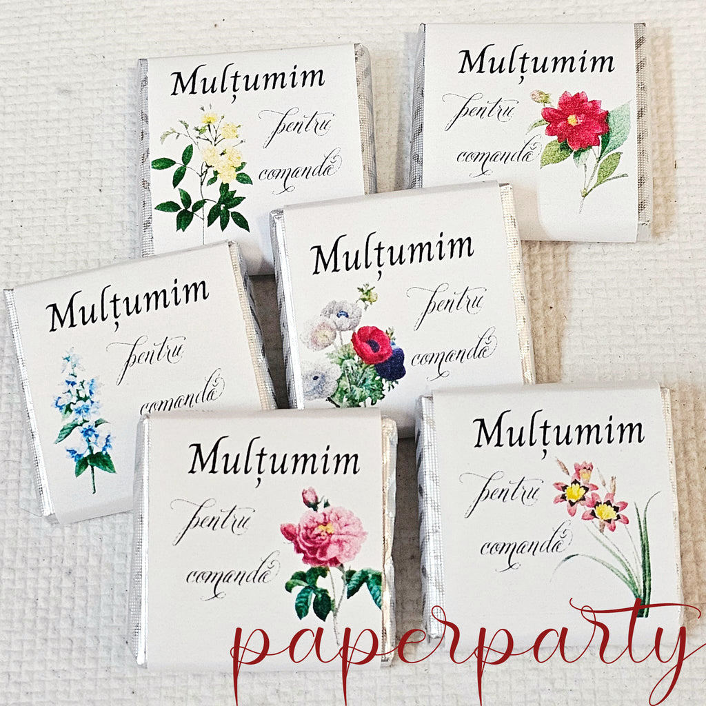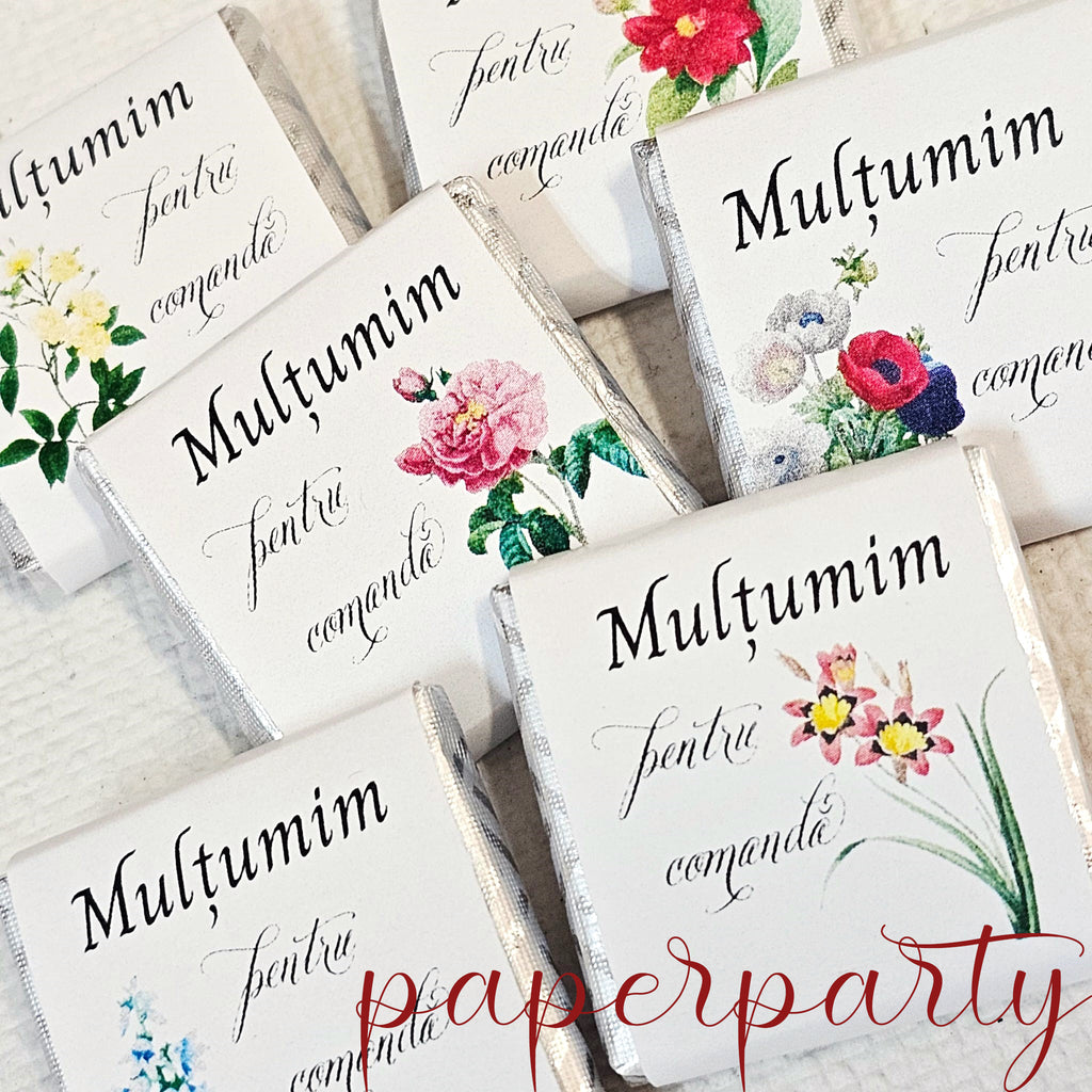 Ciocolată personalizată - Mulțumim pentru comandă cu flori de primăvară
